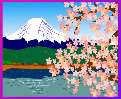 少し手こずりました。レイヤーを何層に分けるかで。桜は部分を描き、コピーしていくやり方で楽ができました。風景は難しいです。 |