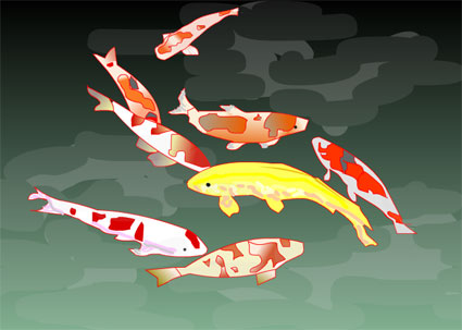 画面上でクリックすると、鯉が動きます。が、ヒレの動き、回転、水はね等々、どれも、リアル感を出すために先生のお助けが必要でした。難しいものですね。 |