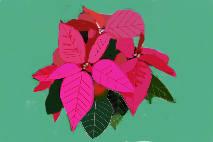 梅田の阪急電鉄のコンコースの改札口近くには、いつも季節の花がプランターで飾り付けてあります。9番線全部に沢山の鉢が置かれています。大層なお金をかけて、乗降客を楽しませてくれています。今はポインセチアの鉢。赤と緑。クリスマスの色です。 |