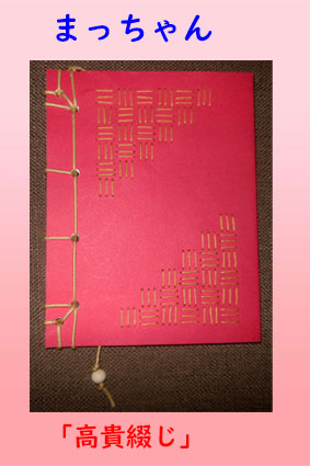 | 表紙の赤と綴じ糸の金茶色がまさに高貴な色合い。表紙の縦3本・横3本の網代模様がシンプルなのに趣を感じさせます。まさに「伝統」のなせる技。 |